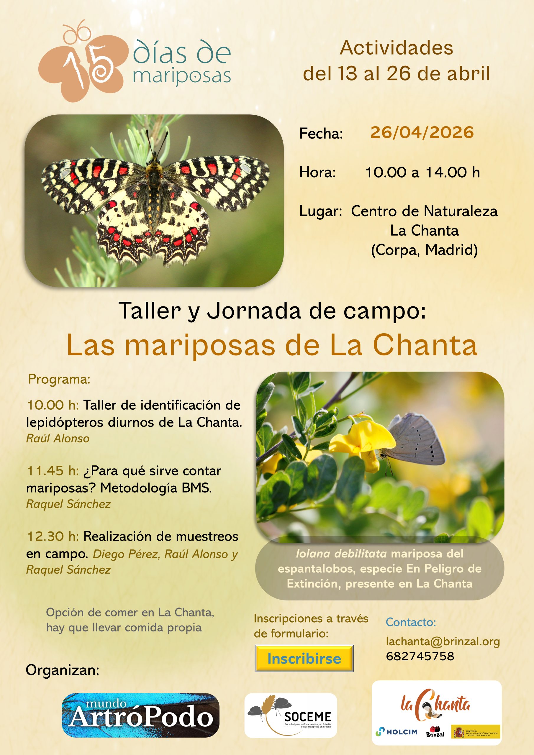 Taller de identificación de mariposas de La Chanta e iniciación al seguimiento estandarizado de sus poblaciones.